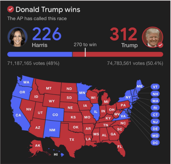 Not only did Trump win the electoral college, including all of the “tipping point” swing states (Wisconsin, Michigan, Pennsylvania, North Carolina, and Georgia), but he beat the odds and took the popular vote as well.